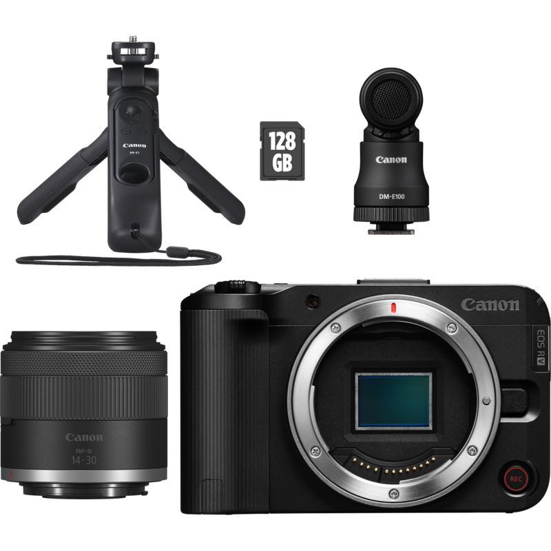 Canon EOS R50 V spiegellose Kamera + RF-S 14-30mm F4-6.3 IS STM PZ Objektiv + Rucksack + SD-Karte + Ersatzakku