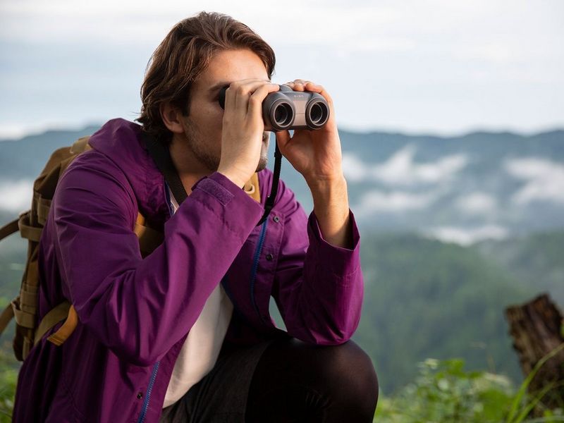 Das 10x20 Fernglas wird mit einer einzigen CR123A-Batterie betrieben, mit der die integrierte Bildstabilisierung bis zu 12 Stunden lang mit Strom versorgt wird. Das Fernglas ist immer bereit für die Action