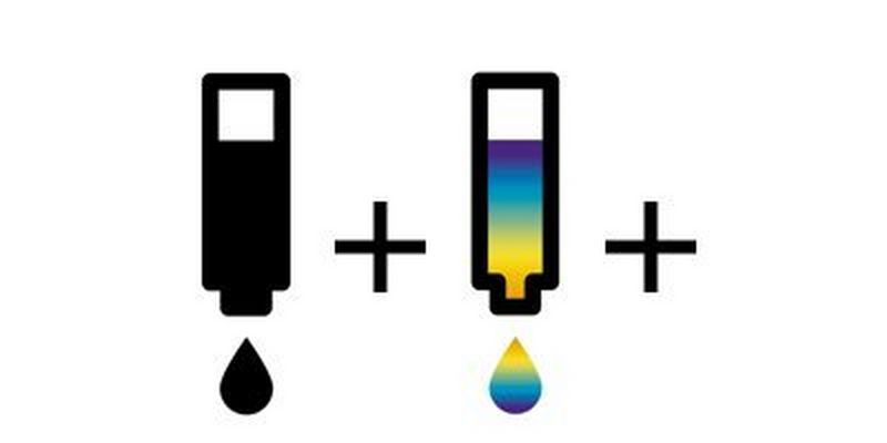 - Vier separate Tinten: Schwarz, Cyan, Magenta und Gelb
