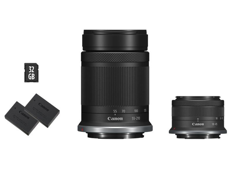 Bau dir deine Foto-Ausrüstung auf Das RF-S 18-45mm F4.5-6.3 eignet sich zum EInstieg hervorragend für die EOS R10, um deiner Kreativität freien Lauf zu lassen. Ebenfalls enthalten ist das RF-S 55-210mm F5-7.1, ein Einsteiger-Zoomobjektiv für Sport und Spontaneität. Das 55-210mm-Zoomobjektiv ergänzt das RF-S 18-45mm, da beide zusammen praktisch jede Herausforderung meistern. Mit einer 32-GB-SD-Karte und einem zusätzlichen LP-E17-Akku kannst du besonders lange fotografieren.