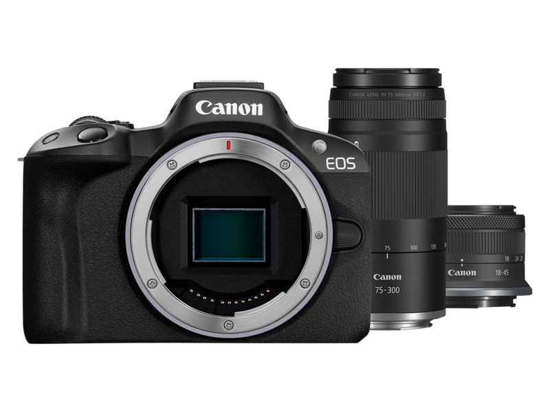 Canon EOS R50 spiegellose Kamera, Schwarz + RF-S 18-45mm F4.5-6.3 IS STM Objektiv + RF 75-300mm F4-5.6 Objektiv