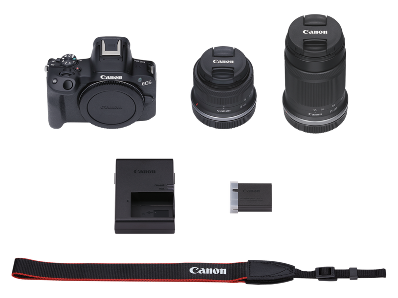 Canon EOS R50 spiegellose Kamera, Schwarz + RF-S 18-45mm IS STM + RF-S 55-210mm IS STM Objektiv