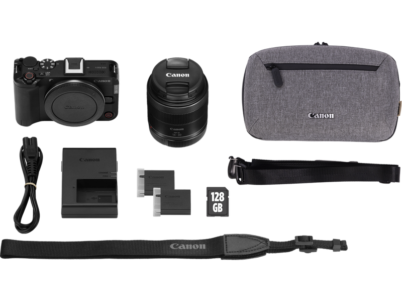 Canon EOS R50 V spiegellose Kamera + RF-S 14-30mm F4-6.3 IS STM PZ Objektiv + Rucksack + SD-Karte + Ersatzakku