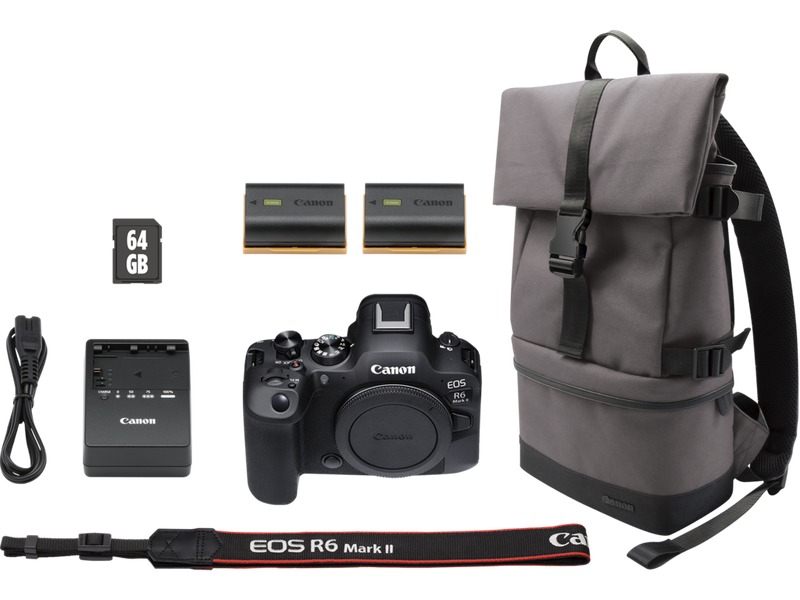 Canon EOS R6 Mark II spiegellose Kamera, Schwarz + Rucksack + SD-Karte+ Ersatzakku
