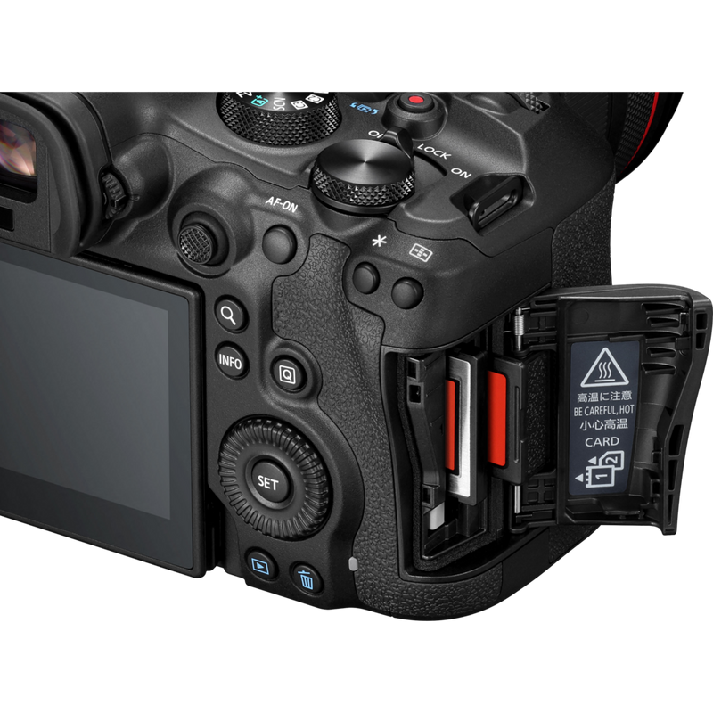 Für eine bessere Organisation und mehr Sicherheit hat die EOS R6 Mark III zwei Kartensteckplätze. Der schnelle und leistungsstarke CFexpress Typ B unterstützt bis zu 8 TB für ausgedehnte Shootings, während die gängigen UHS-II SD-Karten Komfort und Benutzerfreundlichkeit bieten. Dies ermöglicht den Zugriff auf Funktionen wie fortlaufende Aufnahme und Proxy-Aufnahme sowie das Speichern von Fotos und Videos auf verschiedenen Karten, um organisiert zu bleiben.