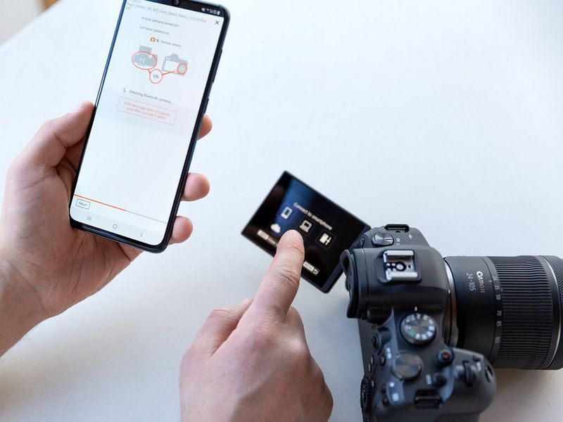 Die EOS R6 verbindet sich über Bluetooth®⁴ und WLAN mit dem Mobilgerät – zum Aufnahmen teilen oder auf image.canon hochladen. Du kannst die Kamera aus der Ferne steuern und so aus ganz ungewöhnlichen Perspektiven fotografieren.