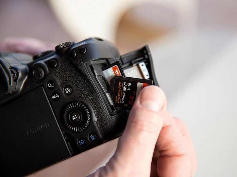 Zwei Speicherkarten-Steckplätze mit Unterstützung von UHS-II SD-Karten. Sicherungsdateien während der Aufnahme, JPEGs und RAW auf verschiedenen Speicherkarten oder Fotos und Videos auf verschiedenen Speicherkarten – die Speicheroptionen sind so vielfältig wie die Kamera.
