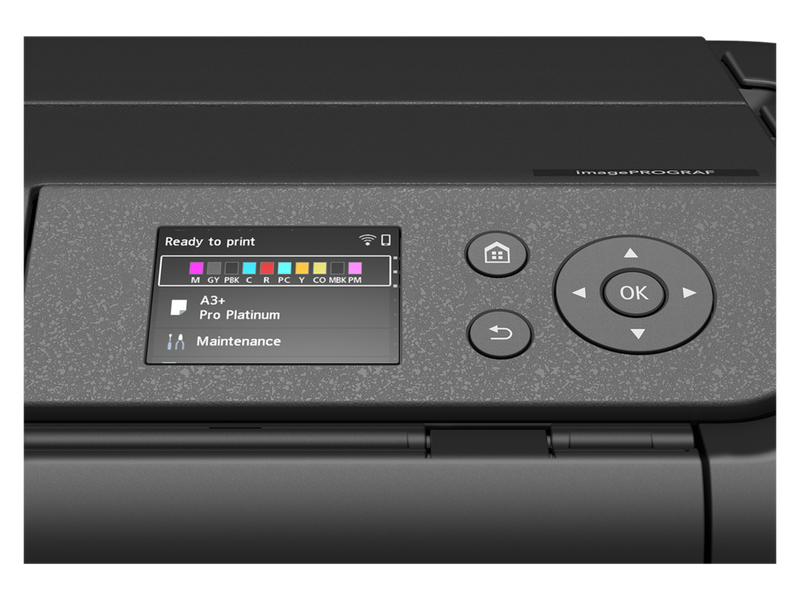 Das schnelle Navigieren durch die Menüs und Funktionen des Druckers erfolgt über ein klares und helles Display, das zudem eine sofortige Überwachung der Druckerfunktionen, Tintenstände und Papiereinstellungen ermöglicht.