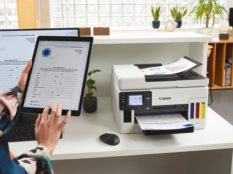 Mit den hohen Druckgeschwindigkeiten von 24 ISO-Seiten/Minute in Schwarz und 15,5 ISO-Seiten/Minute in Farbe ist der MAXIFY GX6050 ideal für das Büro³.