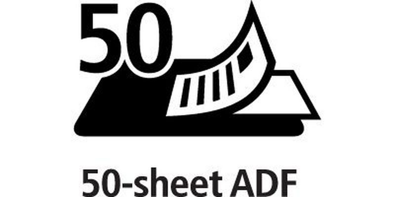 Tintenbehälter mit hoher Kapazität, 600-Blatt-Papierkapazität und eine vom Benutzer austauschbare Wartungskassette reduzieren Ausfallzeiten. Mit dem 50-Blatt-Duplex-ADF können beide Seiten eines Dokuments in einem Durchgang gescannt werden.