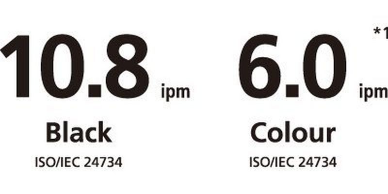 Druckgeschwindigkeit: 10,8 ISO-Seiten/Minute in schwarz und 6,0 ISO-Seiten/Minute in Farbe³