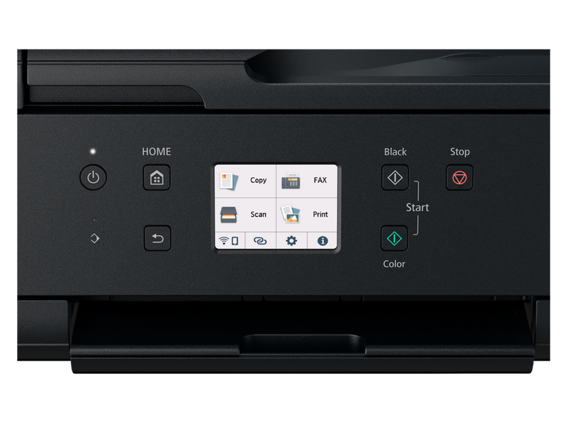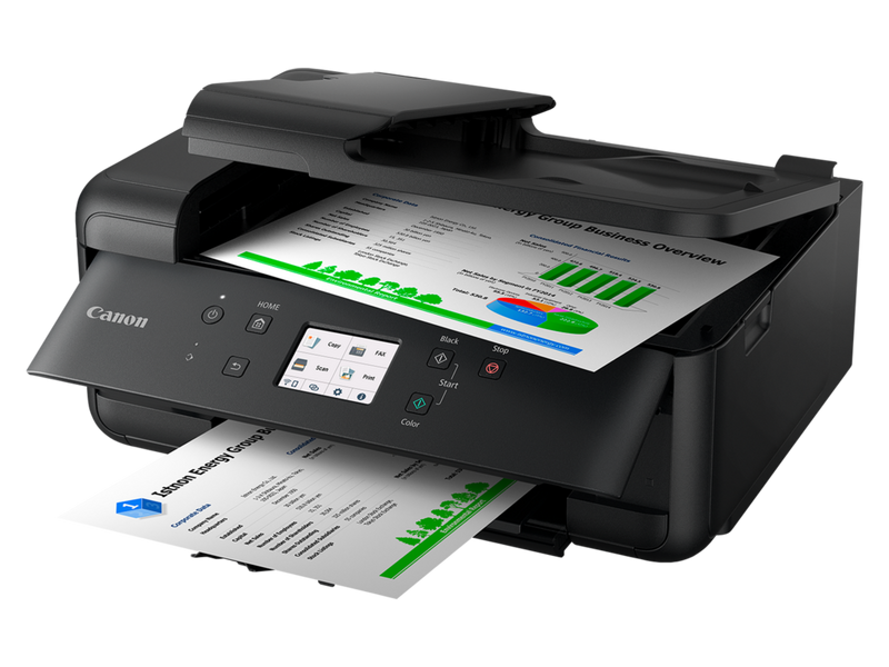 Drucken, kopieren, scannen und faxen mit diesem einzigen kompakten Tintenstrahl-Multifunktionssystem. Ideal für kleine Büros und das Homeoffice: Der Drucker bietet eine flexible WLAN-Konnektivität, kabellosen Direktdruck von Mobilgeräten aus sowie Cloud Printing und Scannen über den Cloud Link der Canon PRINT App. Der Drucker mit fünf separaten Tinten liefert lebendige und detaillierte randlose Fotos mit satten Farben in einer Größe von bis zu A4 sowie gestochen scharfe und gut lesbare Textdokumente. Der 20-Blatt-ADF und die vordere und hintere Papierzufuhr sorgen dabei für eine hohe Produktivität. Die optional erhältlichen XL- und XXL-Tintenpatronen und der automatische beidseitige Druck sind äußerst einfach zu bedienen und können ganz leicht über einen QR-Code und den 7,5 cm großen Farb-Touchscreen eingerichtet werden.