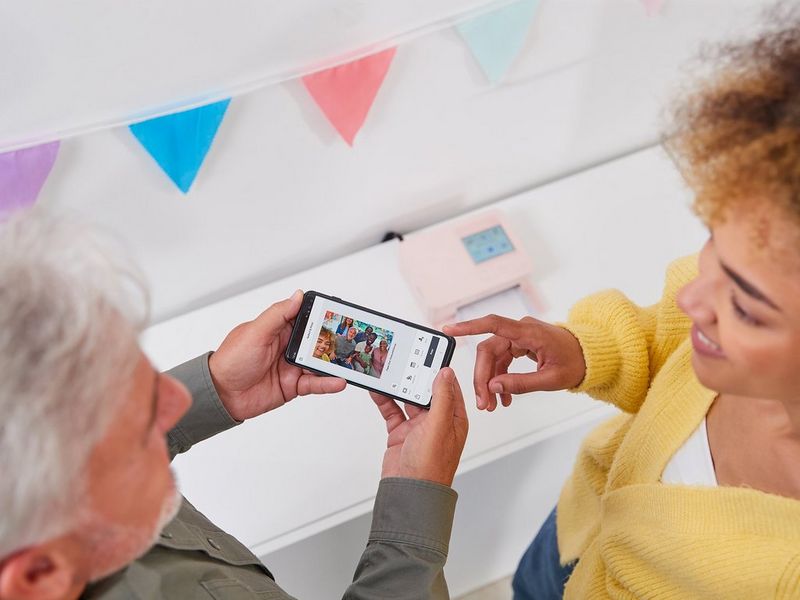 Drucke kabellos direkt von deinem Mobilgerät mit der SELPHY Photo Layout App und verbinde Mobilgeräte, Computer und Kameras³ kabellos – oder per USB-C einen Computer, eine Kamera oder einen USB-Stick.