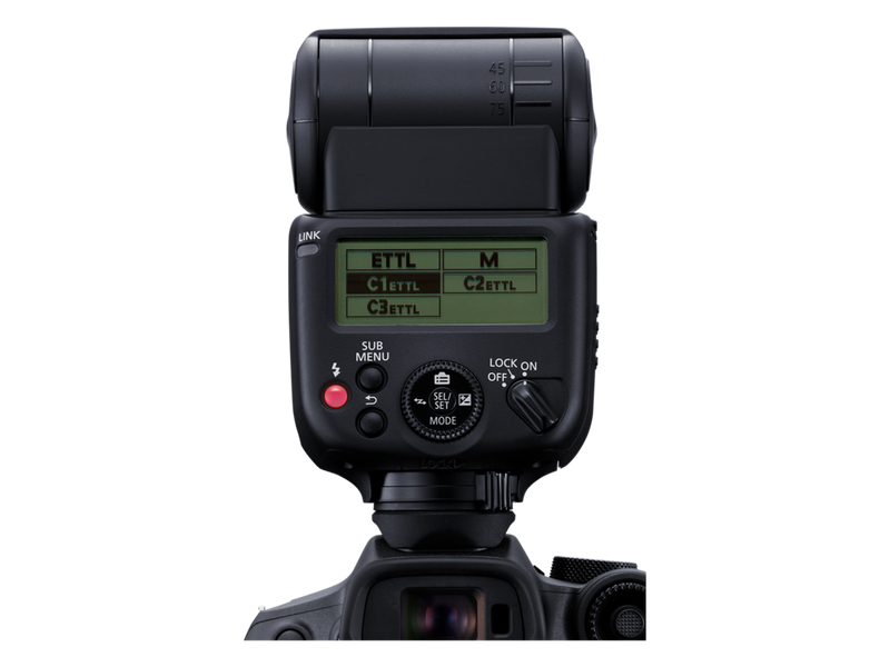 Dieses Blitzgerät ist leicht und kompakt – perfekt für Reisen oder längere Aufnahmen. Du kannst die Einstellungen mit dem taktilen elektronischen Wahlrad optimieren oder die E-TTL II Blitzautomatik aktivieren, um Informationen zu erfassen und sofort die richtige Belichtung zu erzielen.