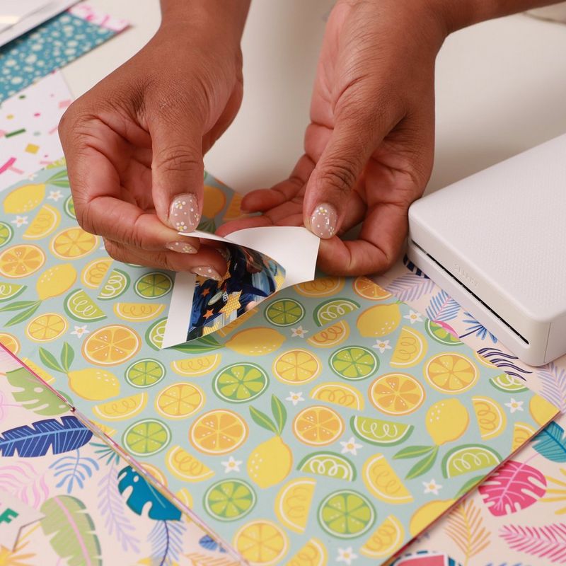 Ziehe die Schutzfolie vom Fotopapier ab und verwandele deine Schnappschüsse in personalisierte Aufkleber, die du mit anderen teilst oder dort anbringst, wo du möchtest.