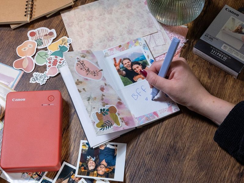 Mit dem einzigartigen neuen Stickerpapier XS-20L ermöglicht er den Druck quadratischer Bilder mit einem Rand zum Beschreiben, der an die traditionellen Polaroidbilder erinnert. Die Prints mit ihrem coolen Retro-Look sind großartig für die Pinnwand oder ein Scrapbook. Das Set aus Tinte und Papier XS-20L ist genau auf 20 Prints ausgelegt, bevor der Satz ausgetauscht werden muss. Dadurch ist der Drucker immer bereit.