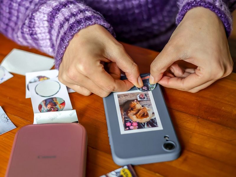Ziehe die Schutzfolie vom ZINK™ Fotopapier ab und verwandele deine Schnappschüsse in personalisierte Aufkleber, die du mit anderen teilst oder dort anbringst, wo du möchtest.